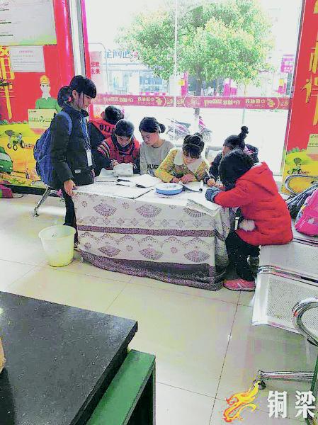 “周一到周四,這里的學(xué)生有20個(gè)左右,只有周五部分學(xué)生要乘車回銅梁,部分學(xué)生走路回家,這里學(xué)生就少很多。”劉文萍說,營業(yè)廳里原本沒有桌子,板凳也是提供給前來辦業(yè)務(wù)的顧客坐的。為何會(huì)在這兒設(shè)立一個(gè)“四點(diǎn)半”課堂,這源于一年前她的一個(gè)發(fā)現(xiàn)。