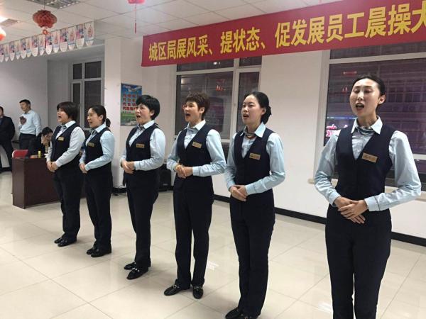 5月13日晚,丹東分公司、工會舉辦了全地區“展風采、提狀態、促發展”晨操大賽活動。市分公司城區局24個支局全部參加了比賽。此次晨操比賽內容豐富,精彩紛呈,參賽隊員展示了良好的精神面貌和飽滿的工作熱情,傳遞了積極向上、拼搏進去的正能量。晨操大賽將風采展示、儀容儀表檢查、柜員服務“七步曲”演練都納入了評分項目,由市分公司工會、黨建、金融業務部領導作為評委,這不僅是一場晨操比賽,也是對優質文明服務工作的全面檢驗。