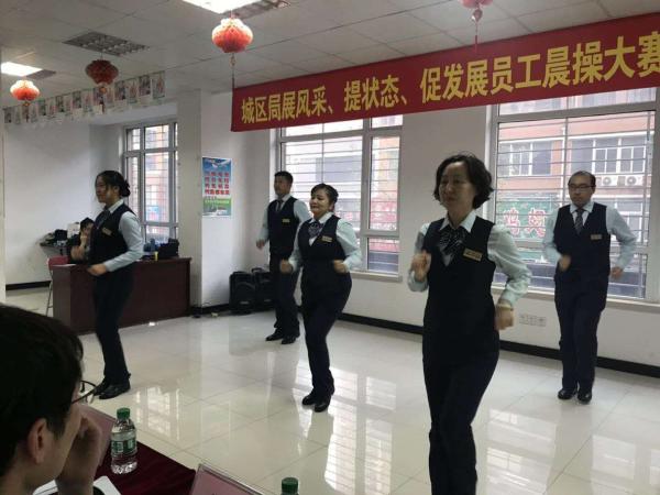比賽中,每支隊伍都斗志昂揚、團結奮進,每位參賽隊員都動作標準、整齊劃一;在晨操環節中快樂舞蹈、廣播體操齊齊上陣,內容豐富、形式多樣,充滿動感與活力的表演贏得陣陣掌聲;風采展示口號響亮有力,蓬勃向上的精神狀態感染了在場的每位觀眾。此次晨操大賽,各網點、各部門組織員工在不影響正常上班的前提下,利用業余時間加班加點進行排練,年齡大的員工和年輕員工一道,突破自我,提升服務,凝聚團隊合力,展示團隊風采,樹立最美服務形象為自己代言。