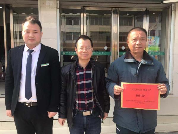 11月份,江西省郵政工會(huì)將集團(tuán)工會(huì)和省郵政工會(huì)補(bǔ)助的3.5萬(wàn)元受災(zāi)員工愛(ài)心款下發(fā)給撫州市郵政工會(huì)。撫州市郵政工會(huì)根據(jù)員工家庭受災(zāi)程度,核給楊仉發(fā)7000元補(bǔ)助款