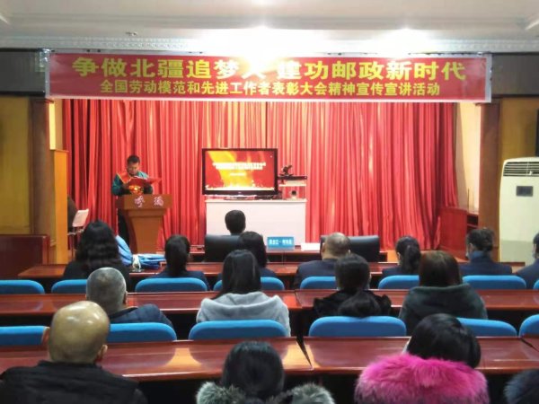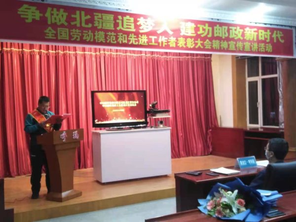 為弘揚勞動模范的先進事跡和高尚品質,更好地發揮勞動模范引領作用,12月22日下午,2020年11月當選的全國勞動模范韓幫緒同志在呼瑪縣分公司、郵政工會的組織下開展了“爭做北疆追夢人 建功郵政新時代”全國勞動模范和先進工作者表彰大會精神宣傳宣講活動,縣分公司全體職工參加了活動。全國勞模韓幫緒同志真實生動地講述了他作為一名綠衣使者,在平凡的崗位上做出了不平凡的奉獻,他用自己的實際行動鑄就了新時代的勞模精神和一名郵政共產黨員的奉獻精神,他的先進事跡展示了勞動最光榮、勞動最偉大、勞動最美麗的社會風尚。