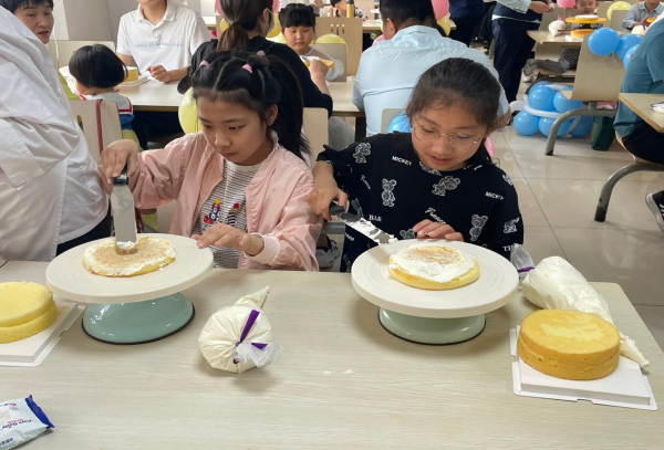 活動開始后,孩子們變身為小小“糕點師”。在蛋糕店老師的指導下,每個小朋友各種發揮自己的想象力,在蛋糕上抹勻奶油,鋪上各色水果布丁,制作出形色各異又不失童趣的蛋糕。家長們則一邊指導孩子做蛋糕,一邊為孩子們拍照,享受整個制作過程。 蛋糕制作完成后,小朋友們開心地展示著自己親手制作的蛋糕。“今天玩得真嗨,又好玩又有好吃的。”一個小朋友邊吃著小點心,邊與身旁的另一個小朋友說著。現場的家長表示,在六一兒童節,和孩子一起親手制作蛋糕,是送給孩子最好的兒童節禮物。