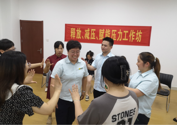 本次活動邀請宣城職業技術學院心理工作室主任方婉瑩副教授主持,城區公公司24人網點負責人和理財經理參加了此次活動。目前很多的金融網點的負責人工作連軸轉,壓力很大,有時候還得不到家人的理解,壓力與日俱增,難免會出現思想緊繃、失眠、情緒波動等情況。針對這些情況,老師認真與大家進行了溝通,對提問給予專業的解答,并開展了“十巧運動操”、“信任不倒翁游戲”、“OH卡探秘”團體活動。此次活動讓職工們對工作和生活中的心理問題有了初步的認知,在如何對待工作中的種種問題,以及如何構建和諧的家庭環境和親子關系方面,得到了心理健康教育專家的有效指導。