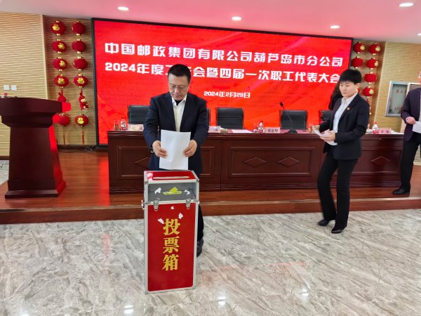 中國郵政集團有限公司葫蘆島市分公司四屆一次職工代表大會于2024年2月29日在市分公司六樓會議室召開,會議認真聽取了張忠華總經理所作的《攻堅克難 轉型煥新 真抓實干 以實干實績開創高質量發展新局面 奮力譜寫葫蘆島郵政趕超跨越新篇章》的工作報告。大會舉手表決通過了張忠華總經理的工作報告、財務部作的《財務收支情況報告》和《福利費使用情況報告》、辦公室作的《招待費使用情況報告》和人力部作的《社保、醫保、公積金繳交情況報告》。