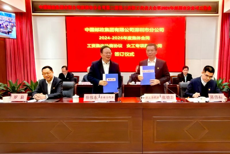 1月26日,深圳市郵政分公司召開了第二屆第三次職工(會員)代表大會暨2024年工作會議。來自各管理部室和基層單位的104名職工代表審議并通過了總經理工作報告、集體合同履行及年金運作情況報告,職代會質量評估報告,職工代表提案征集處理情況報告,并以無記名投票形式,對市分公司領導班及成員進行了民主評議。會上還簽訂了2024-2026年新一輪集體合同。