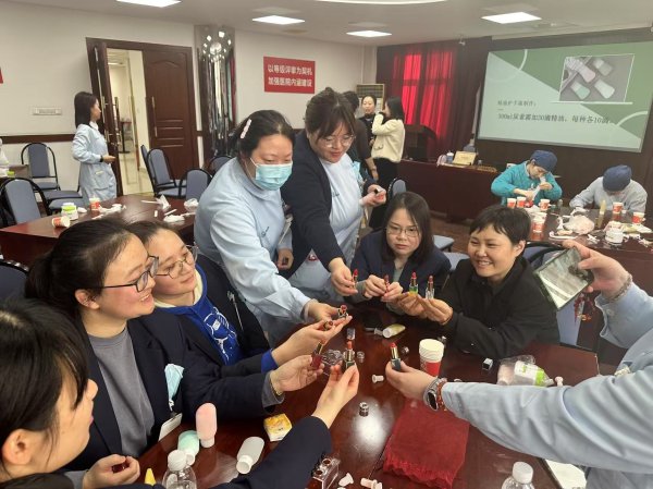 活動邀請了高級芳療師“麗云”老師,為大家講解了各類香氛的基本功能與適宜人群,并帶領大家一起進行唇膏DIY制作。唇膏制作步驟看似簡單,實則考驗著制作者的耐心、恒心和細心。經過一個多小時的專注創作,一支支獨具香味、顏色各異的唇膏在大家的巧手下應運而生。大家紛紛展示自己的得意之作,交流制作心得,活動現場洋溢著歡聲笑語,氣氛熱烈而溫馨。
