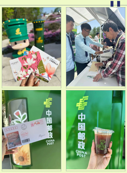 在錢家灘路(前灘公園巷段)限時步行街舉辦的前灘花集和早春非遺生活節期間,浦東郵政在新自然主義花廊旁特別設立了花展快閃郵局。為了慶祝此次花展,浦東郵政推出了限定版花展定制明信片和彩色郵資機戳,為本次花展增添了一份特別的記憶點。這一獨特的郵資機戳不僅是對本屆花展的美好祝福,也為廣大集郵愛好者提供了一次難得的收集機會。花展快閃郵局特制了個性化郵差寶貝郵筒,造型獨特,充滿趣味,與現場的自助冰箱貼打印機、有聲明信片打印機一同成為活動現場的一大亮點,游客紛紛駐足打卡。快閃郵局引入云朵主題郵局的云南咖啡,進行現場制作,讓來往行人駐足品味的同時,感受到來自遠方的溫暖問候。現場還提供了豐富的明信片系列和郵政文創產品。