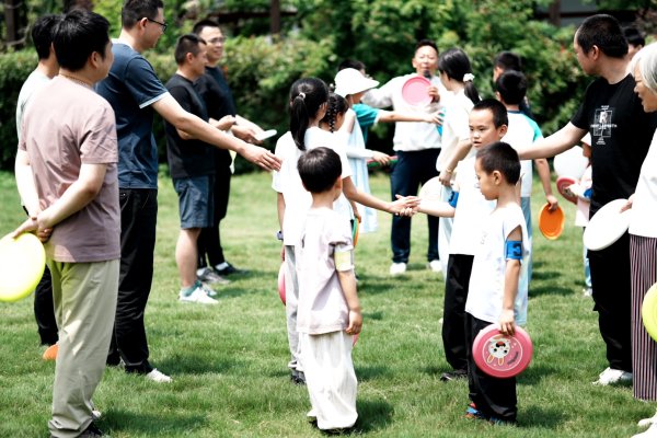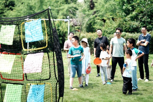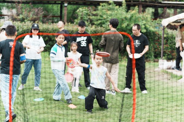 活動當天陽光明媚,在農莊草坪上,身著運動裝的親子家庭在破冰游戲中迅速拉近距離。通過破冰游戲,家長和孩子們迅速打破陌生感,被分成了兩個小組,為接下來的比賽做好了準備。隨后,備受期待的飛盤嘉年華趣味賽正式拉開帷幕。活動設置了飛盤高爾夫、九宮格擲準、不倒翁等多個趣味項目,這些項目不僅上手快,而且老少皆宜,既讓大家在輕松的氛圍中體驗到了運動的快樂,又培養了團隊協作精神。賽場上,家長和孩子們密切配合、奮勇爭先,盡顯活力與激情。有的孩子雖然年紀小,但投擲飛盤時卻有模有樣;有的家庭配合默契,在項目中取得了不錯的成績。整個比賽過程精彩紛呈,歡呼聲、喝彩聲此起彼伏。在緊張刺激的比賽之后,迎來了激動人心的頒獎儀式。工作人員根據兩個小組在比賽中的積分進行排名,為表現優秀的小組頒發了獎品,并進行了集體合影留念,記錄下這美好的瞬間。最后,在午餐時段的露天燒烤區,家長帶著孩子親手烤制食材。一名小朋友在家長的指導下完成人生首次烤肉,自豪地向同伴展示“焦香風味雞翅”。燒烤完后,家長和孩子們圍坐在一起,品嘗著美味的燒烤,享受著悠閑的時光。