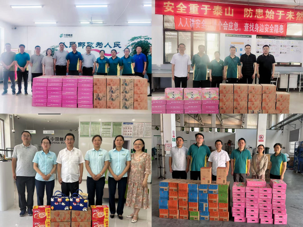 時值盛夏酷暑,為切實關懷奮戰在高溫一線員工,傳遞市分公司黨委和工會的溫暖,7月2日-3日,常州市郵政分公司黨委書記、總經理張旭東率領導班子成員及相關職能部門負責人,分5組深入各城區攬投部、金融網點、速遞部同城業務中心、郵區中心等生產作業一線,開展“夏送清涼”慰問活動。