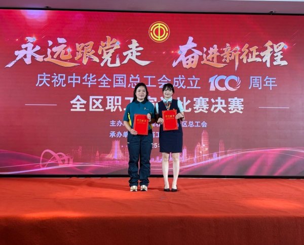 7月10日,由自治區總工會主辦的 “永遠跟黨走 奮進新征程 —— 慶祝中華全國總工會成立 100 周年” 全區職工宣講比賽決賽在南寧舉行。廣西郵政選派桂林市興安縣分公司趙梓涵、梧州市藤縣分公司李春慧兩名選手參賽,與來自全區各行業的43名選手同臺競技,趙梓涵、李春慧兩名選手憑借出色表現榮獲優秀獎。