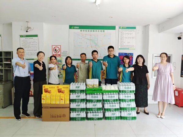 近日,鄭州迎來(lái)高溫“烤”驗(yàn),驕陽(yáng)似火,熱浪灼人。為有效降低高溫作業(yè)對(duì)員工身體健康的危害,切實(shí)維護(hù)廣大一線員工健康權(quán)益,鄭州市分公司積極落實(shí)防暑降溫主體責(zé)任,重點(diǎn)關(guān)注一線攬投員、運(yùn)輸司機(jī)等戶外作業(yè)員工,及時(shí)開(kāi)展“夏送清涼”活動(dòng)。7月14—15日,市分公司領(lǐng)導(dǎo)分赴一線班組進(jìn)行慰問(wèn),為員工送上綠豆、冰糖、水、面包、菊花茶等防暑降溫用品,助力一線員工清涼度夏。