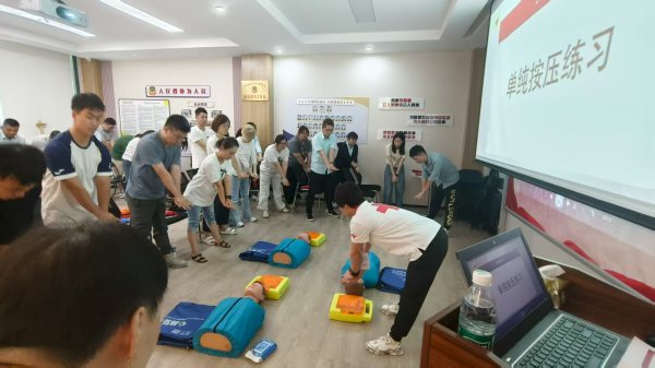 “按壓頻率要保持在每分鐘100-120次,深度至少5厘米,按壓時手臂要伸直……”7月下旬,楊浦郵政工會組織的線下實操培訓現場,楊浦區紅十字會的專業講師正手持模擬人教具,為35名郵政職工細致講解心肺復蘇的操作要點。