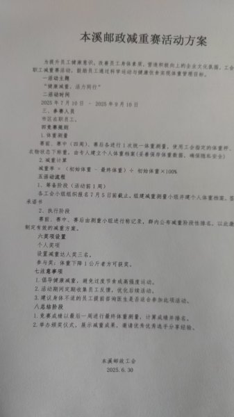 為相應國家“體重管理年”三年行動,讓大家擁有健康身體,本溪郵政工會開展了為期2個月的職工減重比賽,吸引了90余人名職工參與此次活動,工會為每位參賽職工建立了健康檔案,督促大家減重。