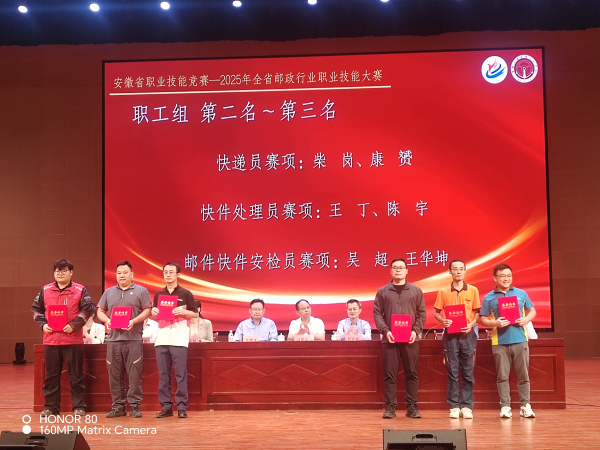 2025年合肥市郵政快遞行業職業技能競賽于9月20日在安徽交通職業技術學院舉行,合肥市分公司選派2名選手參加比賽。本次競賽設置快遞員、快件處理員、安檢員員三大核心工種,采用“理論知識+技能操作”雙重考核機制,全面檢驗選手專業知識儲備與實操應用水平。賽場上,選手們規范操作、激烈比拼,展現出扎實的業務功底。經過緊張激烈地比拼,2名選手分別獲得快件處理員項目第二名和快遞員項目第五名。通過此次競賽為企業搭建了技能交流平臺,有效激發員工鉆研業務的熱情,為郵政企業高質量發展夯實人才基礎 。