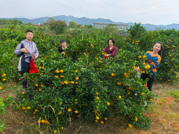 進入橘園,沉甸甸的橘子掛滿枝頭,在陽光下閃爍著誘人的光澤,空氣中彌漫著清新的果香。大家開啟“戰斗模式”,迫不及待地拿起工具,化身“采摘能手”,隱入一樹樹、一叢叢橘林中。