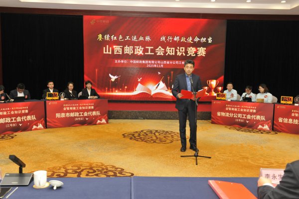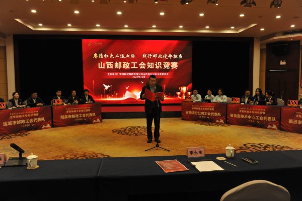 11月6日下午,山西郵政“賡續紅色工運血脈·踐行郵政使命擔當”工會知識競賽總決賽在山西龍城國際飯店隆重舉行。本次競賽由山西省郵政工會主辦,詣在推動全省郵政職工傳承紅色基因、踐行使命擔當。中國郵政集團工會辦公室主任穆迎新、中國郵政集團有限公司山西省分公司黨委委員、副總經理、工會主席李永生等領導出席活動并作重要講話。