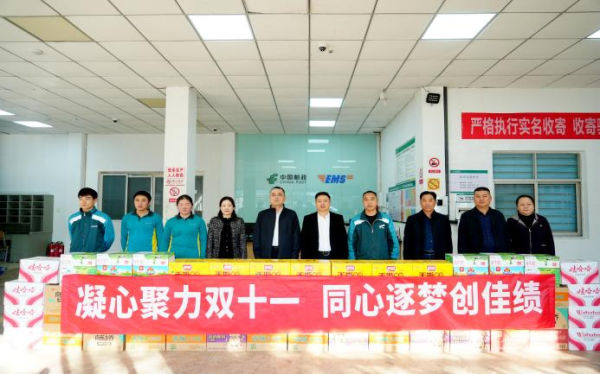 11月11日,駐馬店市郵政分公司黨委書記、總經(jīng)理,黨委委員、副總經(jīng)理、工會(huì)主席等一行先后到駐馬店郵區(qū)中心、驛城區(qū)分公司攬投二部、天中區(qū)分公司開發(fā)區(qū)攬投部慰問,給奮戰(zhàn)在“雙十一”一線的基層員工等送去牛奶、方便面、礦泉水等慰問品,對(duì)大家堅(jiān)守崗位、默默奉獻(xiàn)致以誠摯感謝,同時(shí)為大家加油鼓勁、提振士氣,現(xiàn)場互動(dòng)頻繁、氛圍溫馨熱烈。