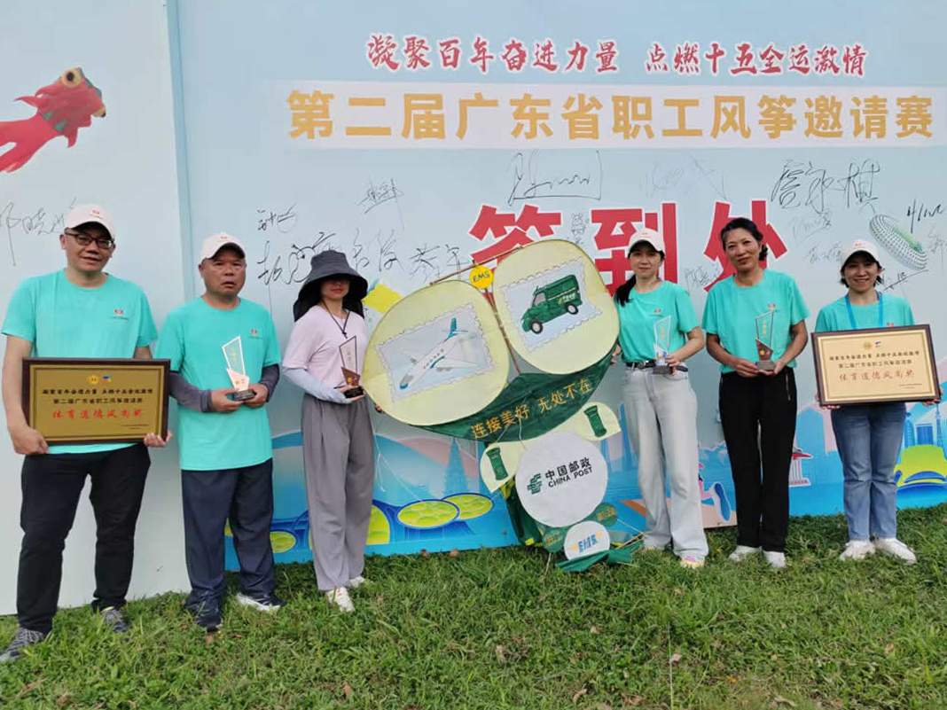 “凝聚百年奮進力量點燃十五全運激情——廣東職工文體匯”第二屆廣東省職工風箏邀請賽在陽江市南國風箏競賽場圓滿落幕。廣東省郵政工會、陽江市郵政工會代表隊憑借精湛操控技藝與創意設計嶄露頭角:不僅斬獲多項賽事獎項,其獨具郵政特色的信鴿卡通風箏更因鮮明行業辨識度成為賽場焦點,成功“吸睛”無數。