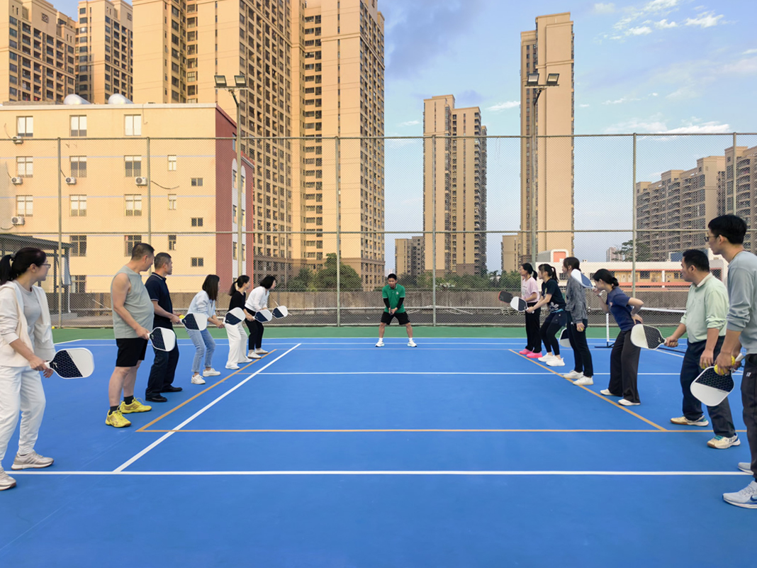 這次培訓特邀專業教練現場授課指導。培訓伊始,教練結合動作演示,從匹克球的起源、基本規則、握拍姿勢等理論知識切入,為職工們進行細致講解。隨后,教練將理論與實踐深度結合,帶領大家完成熱身運動后,針對正手擊球、反手擊球、發球等基礎動作開展分解教學。教練手把手糾正動作要領,耐心解答職工疑問,現場學習氛圍濃厚。職工們熱情高漲,認真打磨每一個動作,發球、接球、扣殺間,技巧逐漸嫻熟,動作愈發規范流暢,活動現場始終洋溢著歡樂和諧的運動氣息。