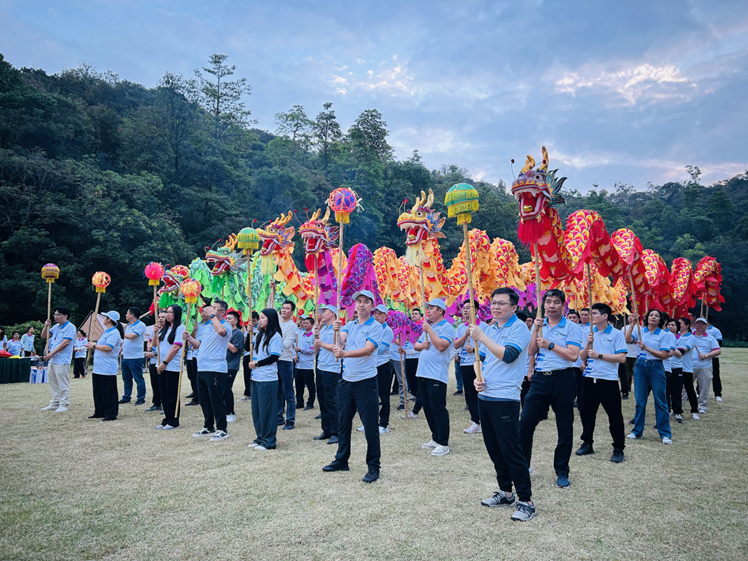 到達練習場地后,重頭戲功夫文化體驗之舞龍表演上演。教練細致指導動作與配合技巧,員工分組練習。鼓點響起,“長龍”在眾人協作下騰躍翻滾,盡顯威武靈動;活動設匯演評比環節,評選出前三名并現場頒獎,氛圍推向高潮。