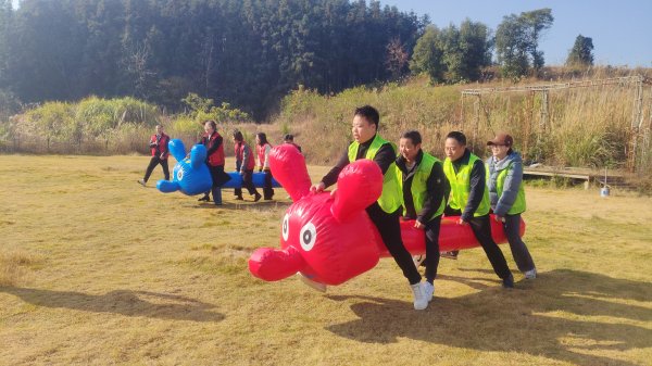 在毛毛蟲項目中,隊員們騎乘充氣毛毛蟲同步發力,喊著整齊劃一的口號穩步向前。大家步伐協同、默契配合,腳下的毛毛蟲在賽道上快速穿梭,身后傳來陣陣加油吶喊聲,每一步都凝聚著團隊的向心力。