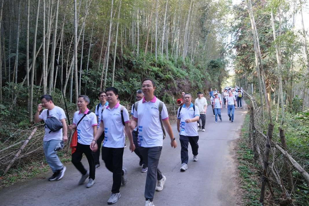 行進途中,員工們沿原生態田埂與石板路前行,潺潺山澗與鳥鳴交織成自然樂章,錯落有致的村屋與盛放的梅花相映成趣,構成一幅兼具生態之美與煙火氣息的鄉村畫卷。大家三五結伴、談笑風生,時而駐足欣賞美景,時而交流工作心得,在自然環境中舒緩了工作壓力。抵達溪頭村后,特色農產品吸引了眾人目光,在收獲健康與歡樂的同時,也體驗了當地的人文風情。