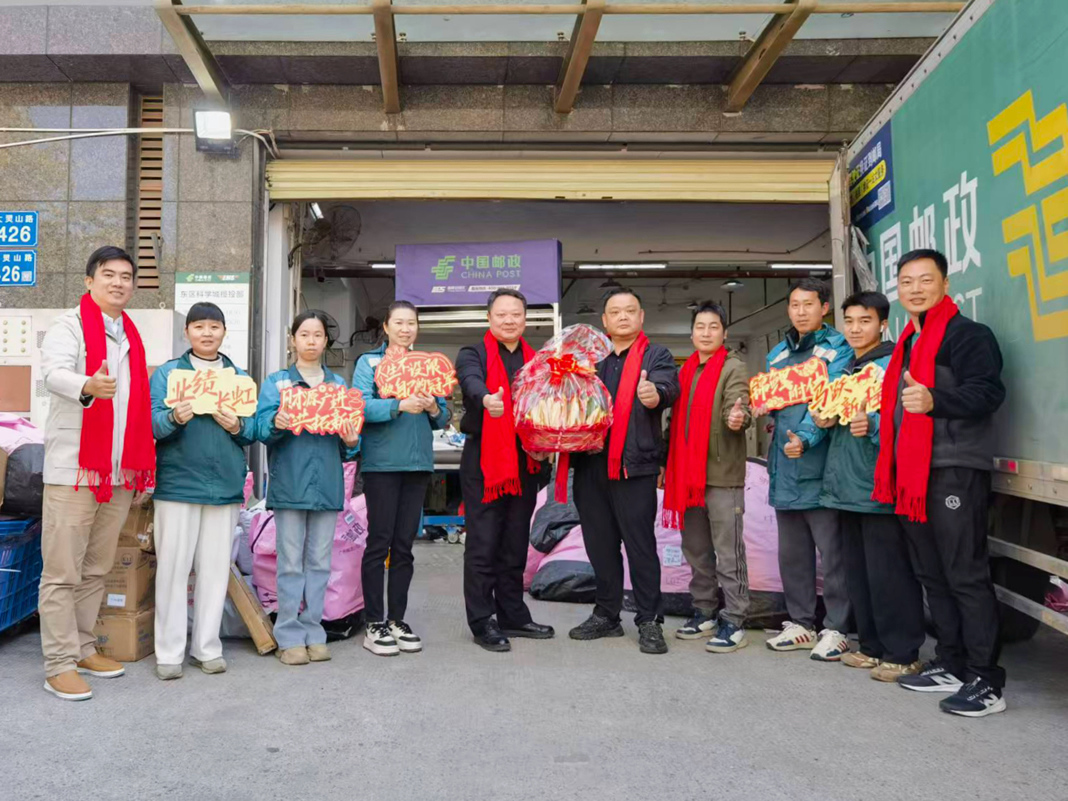 歲啟新章,暖意滿溢。2026年元旦佳節之際,廣州郵政各級領導班子帶隊深入東區、黃埔、番禺、西區、花都、中區、南區、北區等全轄各基層網點,以及動漫展服務攤位等一線服務陣地,開展全覆蓋元旦慰問活動。領導們將精心籌備的慰問品與誠摯的節日祝福,送到堅守崗位的一線員工手中,把組織的關懷精準傳遞至每一位奮斗者心間,為旺季生產攻堅注入強勁暖流。