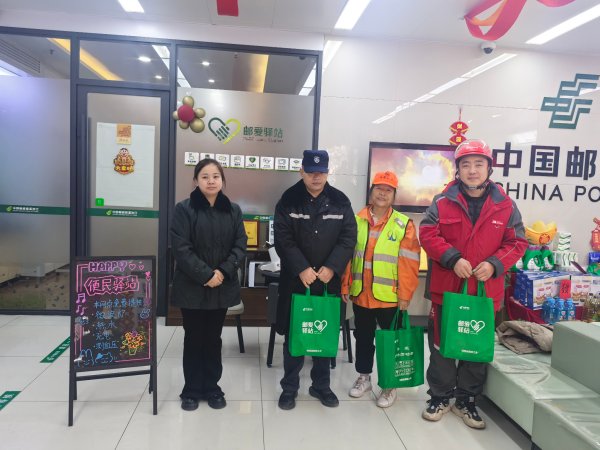 1月15日,為迎接“工會驛站服務戶外勞動者日”,向辛勤付出的戶外勞動者傳遞溫暖與祝福,西安市郵政工會組織各郵愛驛站開展了形式多樣的關愛活動。