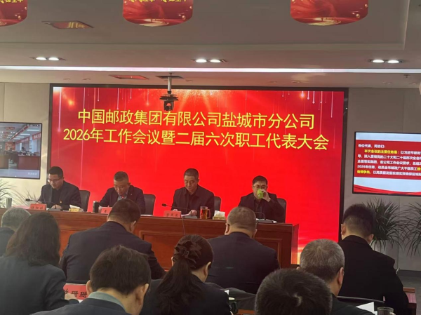 1月28日,鹽城市郵政分公司2026年工作會議暨二屆六次職工代表大會順利召開,會議深入貫徹黨的二十大和二十屆歷次全會精神、中央經(jīng)濟工作會議精神,全面落實集團、省公司工作會議要求,總結(jié)2025年工作,分析形勢任務(wù),部署2026年任務(wù),動員全市郵政廣大干部員工統(tǒng)一思想、堅定信心,實干篤行、奮楫爭先,以高質(zhì)量發(fā)展實績實效確保鹽城郵政“十五五”良好開局。