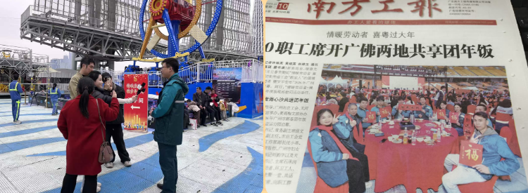 這次活動為員工們精心籌備了粵式特色團年飯,美味菜肴搭配寓意吉祥的廣式甜點,兼顧口感與年味,讓大家吃得舒心、吃得滿意。工會還為每位員工送上豐富的新春慰問品,一份份沉甸甸的禮品,承載著工會組織對一線勞動者的真切關懷與美好祝福,讓郵政員工們倍感溫暖、備受鼓舞。活動期間,廣州郵政一線員工王朋作為職工代表,接受了南方+、中國新聞網等多家媒體采訪,他動情說道:“作為一名郵政一線員工,常年堅守崗位,很少有機會和這么多各行業同行一起吃團年飯。感謝市總工會和廣州郵政工會的貼心安排,不僅讓我們品嘗到了美味的團年飯,更感受到了濃濃的節日氛圍,這份溫暖讓我們心里特別踏實。新的一年,我們會繼續堅守崗位、履職盡責,用心做好郵政服務,為廣州城市運轉貢獻郵政力量。”