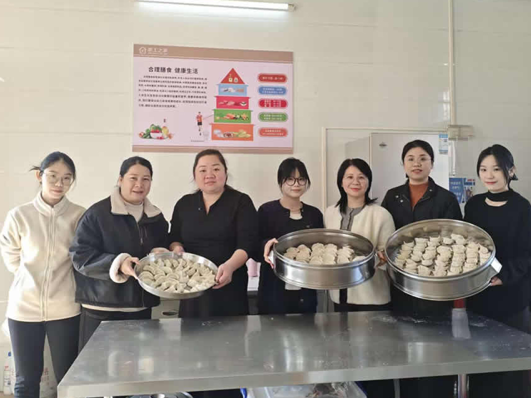 當(dāng)天上午,職工食堂內(nèi)職工熱情高漲、分工協(xié)作包餃子,大家圍坐在一起,巧手制作形態(tài)各異的餃子,暢談工作生活、分享家常,歡笑聲不斷。